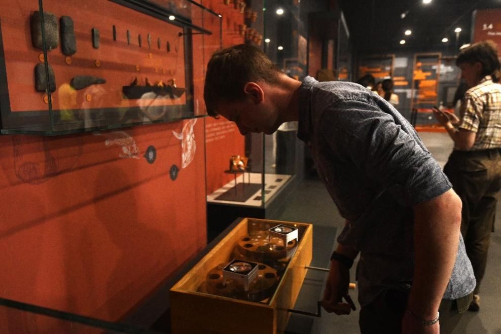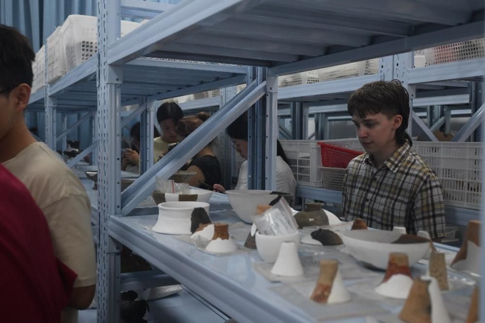 9月13日上午9点,两校同学共同参观了武汉大学凤凰咀遗址实习基地陈列馆和文物库房。在参观中,同学们通过面对面观察和亲手触摸文物,相互交流、热烈讨论,对以前在学校课堂上听讲过的屈家岭文化、石家河文化、煤山文化的标志性器物都有了更加直观的感受,也对凤凰咀遗址的考古工作在史前文化与社会、动物、植物、科技等各方面所取得的收获有了更加全面的了解。